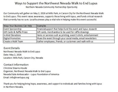 Your charitable donation goes directly to the Lupus Foundation of America and supports research, awareness and finding a cure. This is a great opportunity to promote your business and create goodwill within the community. To make your donation you can follow this link to my personal page